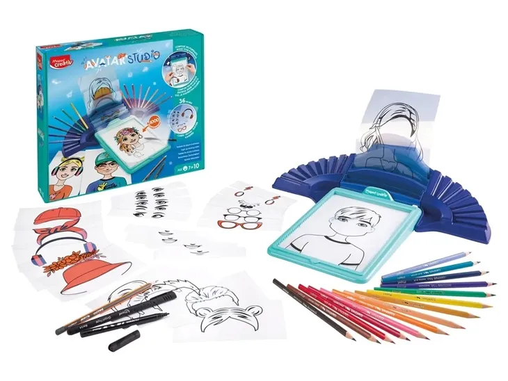 Pierwsza tablica do tworzenia Avatarów: unikalnych i spersonalizowanych wirtualnych wizerunków. Można się nimi pochwalić babci czy znajomym albo wykorzystać w grach komputerowych, mediach społecznościowych, a nawet w nowoczesnej komunikacji internetowej. Zestaw Maped pozwala na stworzenie niemal 1000 różnych kombinacji. Zawartość to 36 szt. transparentnych modeli/szablonów, flamaster, 14 kredek, ołówek, czarny cienkopis, 5 czystych kartek, instrukcja. Podświetlone wzory (szablony) może bez trudu odrysować i pokolorować każdy, kto zechce spróbować stworzyć swojego awatara.