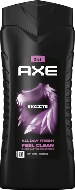 Axe Excite Żel pod prysznic 400 ml to pewny wybór dla mężczyzn, którzy cenią sobie wyraziste zapachy, kompleksową pielęgnację i trwałe uczucie świeżości. Pozwól, by codzienny prysznic stał się chwilą przyjemności i energii na cały dzień.