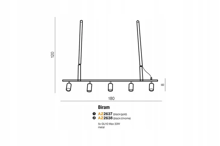 - Ilość źródeł światła: 5