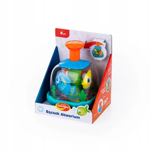 Wirująca zabawa w podwodnej odsłonie! Ten wesoły bączek jest wypełniony rybkami i morskimi roślinkami. Im szybciej maluch będzie wciskał pomarańczowy tłok, tym szybciej będą się kręcić rybki. Nasadę bączka i tłok zdobią wypukłe wzory, idealne do eksplorowania małymi rą przeznaczony jest dla dzieci od 6 miesiąca życia. Cechy produktu:kręcące się rybki;tłok do wciskania z wypustkami o zróżnicowanej fakturze;wiek: 6m+.