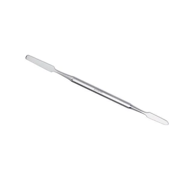 Bagietka dwustronna: Bagietka posiada długie zakończenie w kształcie łopatki z jednej strony oraz delikatnie ścięte brzegi z drugiej strony służące do precyzyjnego malowania kształtu brwi. Uchwyt bagietki ma chropowatą powierzchnię ułatwiającą swobodne trzymanie narzędzia w dłoni.