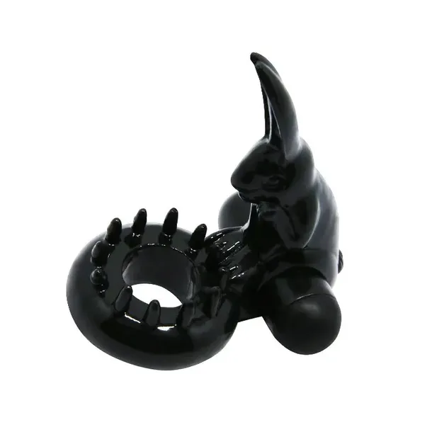 Silikonowy, elastyczny pierścień erekcyjny na penisa ze stymulującymi wypustkami na pierścieniu i z stymulatorem łechtaczki w kształcie króliczka.