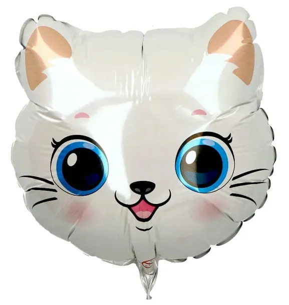 BALON foliowy biały kotek urodziny roczek 21 cm przyjęcie głowa zwierzęta