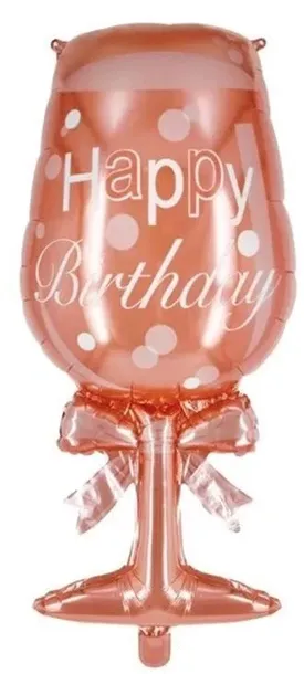 Balon foliowy kieliszek z napisem Happy Birthday o wysokości ok 90 cm. Balon posiada zawór, dzięki czemu powietrze nie uchodzi po napompowaniu.