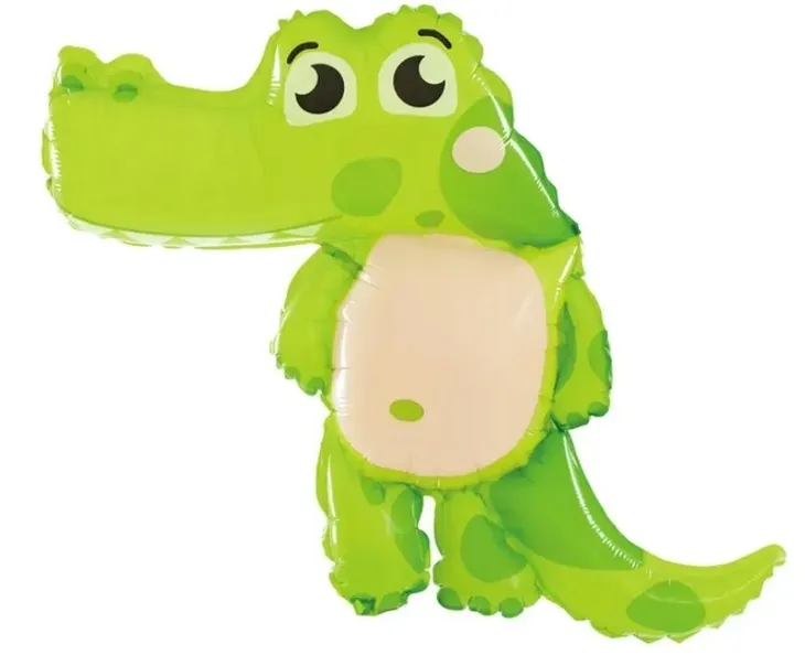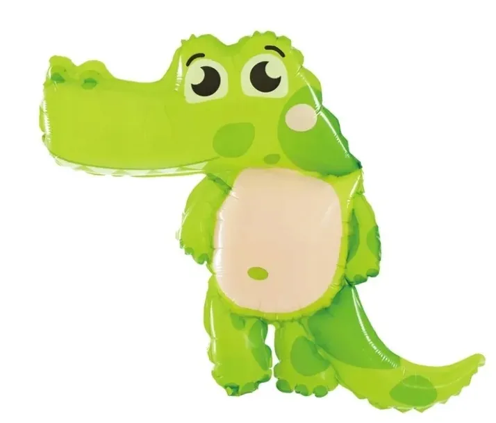 Balon foliowy Krokodyl o wymiarach 45 x 63 cm. Balon posiada zawór, dzięki czemu powietrze nie uchodzi po napompowaniu.