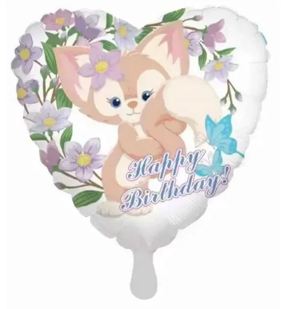 Balon foliowy okrągły przyjęcie urodzinowe LISEK urodziny roczek serduszko