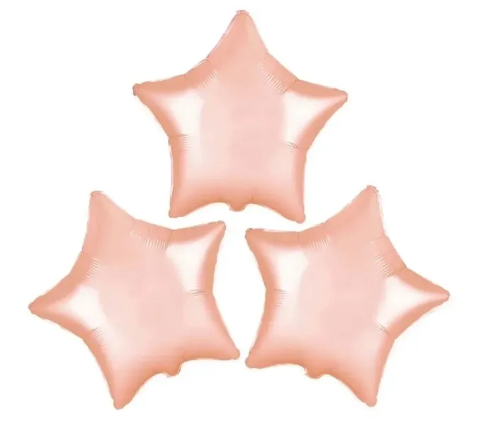 Balony foliowy gwiazda zestaw 3 sztuki o wymiarach ok 25 x 25 cm w kolorze rose gold. Balon posiada zawór, dzięki czemu powietrze nie uchodzi po napompowaniu.