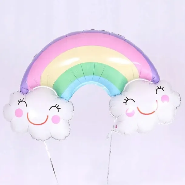 balon foliowy TĘCZA z chmurkami pastelowa roczek