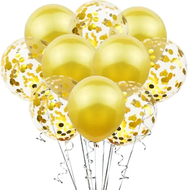 Ten wyjątkowy zestaw 10 balonów z konfetti w kolorze złota przyniesie Waszemu wydarzeniu niepowtarzalny blask i urok. Stworzony z myślą o tych, którzy pragną zaczarować swoich gości niezapomnianym detalem.