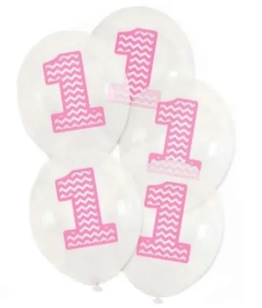 Balony lateksowe przezroczyste róża cyfra 1 urodziny roczek 5 szt. 30 cm