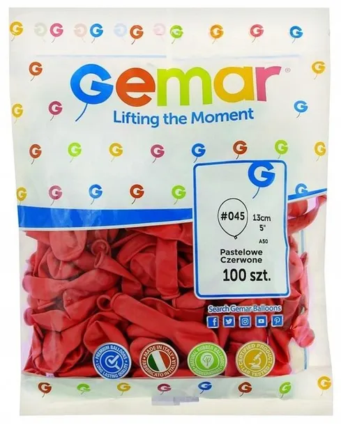 Balony A50 pastel 5 - czerwone 45/ 100 szt.