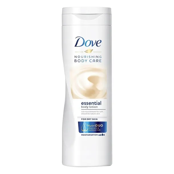 Pielęgnująco-odżywczy balsam Dove Essential Nourishment zawiera naszą unikalną formułę NutriDuo wzbogaconą naturalnymi dla skóry składnikami odżywiającymi i bogatymi olejkami eterycznymi, które pomogą stopniową poprawić jej kondycję. Dla uzyskania najlepszych rezultatów, stosuj ten balsam nawilżający podczas codziennej pielęgnacji ciała. *w warstwie rogowej naskórka