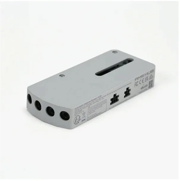 AMS Hub to koncentrator, który służy do zwiększania liczby systemów AMS podłączonych do drukarek serii Bambu X1/P1. Z jego pomocą możliwe jest podłączenie od 1 (4 kanałów) do 4 (16 kanałów) Automatycznych Stacji Materiałowych (Bambu Lab AMS).