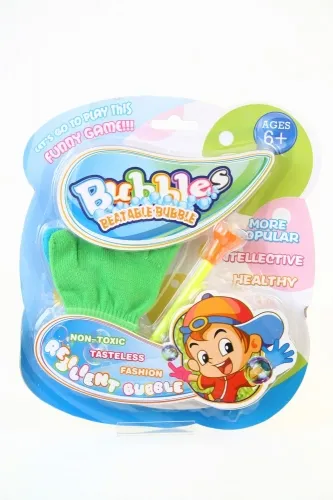 Bańki mydlane "magiczne".Zestaw zawiera płyn do baniek, ustnik, podstawkę na płyn oraz rękawicę do podbijania wydmuchanych baniek.