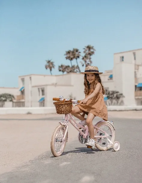 Zainspirowane stylem retro i skandynawskim wzornictwem. Lekka aluminiowa rama, brązowe skórzane siodełko i dopasowane uchwyty, sprawią, że jego właściciel będzie najbardziej "cool" mini rowerzystą w okolicy! Rowerek wyposażony jest w unikatowe palisandrowe pedały, stylowe kremowe opony oraz wiklinowy, odpinany kosz, idealny do spakowania prowiantu na dzień pełen przygód.Najwyższej jakości akcesoria: stopka, dodatkowe kółka treningowe, zabezpieczenia tarcz, regulowane siodełko i kierownica, odblaski.Najważniejsze cechy rowerka:- Lekka aluminiowa rama w różowym/białym kolorze- hamulec nożny- hamulec ręczny na kierownicy, dostosowany do rączki dziecka- stylowe, palisandrowe pedały- kosz wiklinowy na kierownicę- kółka treningowe- stopka- kremowe, 16 calowe koła- przeznaczony dla dzieci w wieku 4-7 lat- dzwonek- siodełko z imitacji skóry, w brązowym kolorze- światło odblaskowe przednie i tylne- błotnik i osłona łańcucha- jeden bieg- regulowane siodełko- waga: 7,9 kg- regulowane siodełko od 46 cm do 57 cm- dodatkowe pedały z PCV- regulowana kierownica od 66 cm do 72 cm