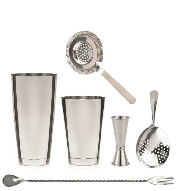 BAREQ Set barmański stalowy BAR PROFESSIONAL Shaker Mieszadło Sito Miarka