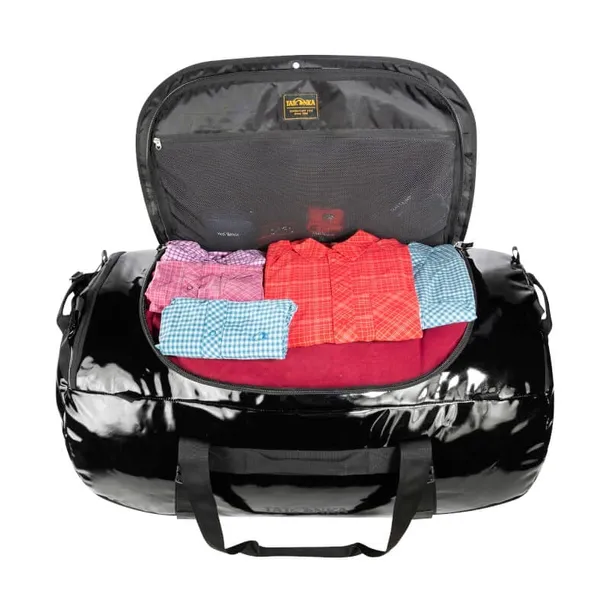 Największa torba podróżna z serii Barrel marki Tatonka o pojemności 130 litrów oferuje miejsce na bagaż na trzytygodniową podróż. Aby ułatwić transport nawet przy pełnym obciążeniu, jest wyposażona w odpinane paski naramienne plecaka.