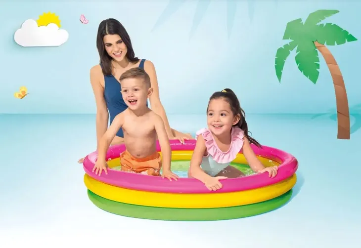 Dmuchany basenik firmy Intex to idealny produkt na upalne dni dla najmłodszych! Żywe kolory przyciągną uwagę każdego dziecka, a niewysokie, dmuchane ścianki zapewnią im bezpieczną zabawę. Wymiary basenu pozwalają na rozłożenie go nawet w najmniejszych ogródkach ponieważ średnica nie przekracza 114cm. Niewielkie wymiary wpływają również na szybkie nagrzewanie się wody w ciepłe dni. Basenik posiada dmuchane dno, do zestawu dołączono łatkę naprawczą.