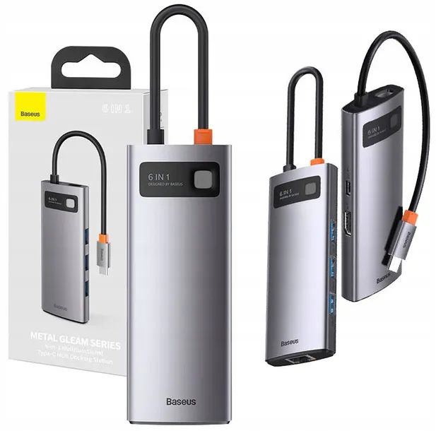 BASEUS ADAPTER HUB 6W1 ROZDZIELACZ ROZGAŁĘŹNIK USB-C USB RJ45 HDMI 4K 100W