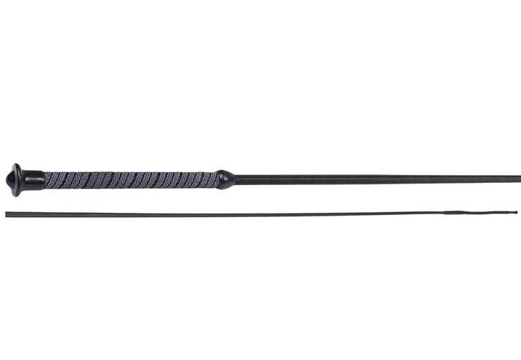 Klasyczny bat ujeżdżeniowy. Posiada antypoślizgową, gumowaną rączkę. Oplatany nylonem.