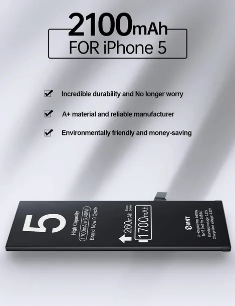 Doskonała kompatybilność: Kompatybilny z iPhone 5. Taki sam rozmiar jak oryginalna bateria; Staranne wykonanie; Większa liczba cykli ładowania; Dłuższy czas czuwania.