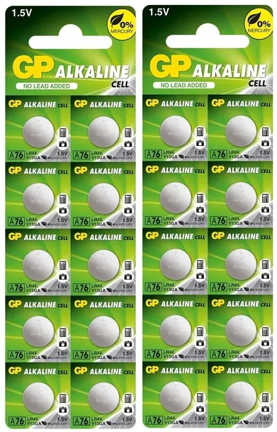 Baterie GP LR44, A76, AG13 należą do alkalicznych baterii guzikowych. Przeznaczone są szczególnie do produktów wymagających długiej trwałości w temperaturze pokojowej, takich jak: zegarki, kalkulatory, gry elektroniczne, piloty i inne. Ich czas przechowywania wynosi do 3 lat, a temperatura pracy od 0°C do +45°C.