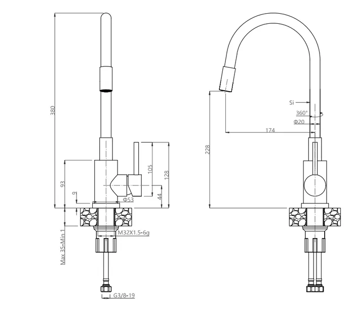 - Wylewka obrotowa 360° - umożliwia swobodne używanie.