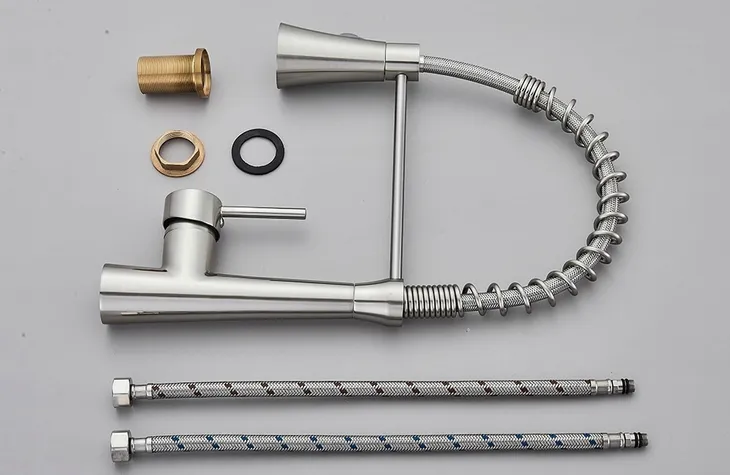 Bateria kuchenna z elastyczną, wyjmowaną, z możliwością obrotu o 360 stopni wylewką zapewni komfort przy wykonywaniu codziennych czynności. Dzięki tej baterii nie tylko usprawnisz mycie, gotowanie, sprzątanie, ale także zaskoczysz wszystkich swoim wyjątkowym dopełnieniem wystroju wnętrza. Montaż na blacie lub zlewozmywaku.