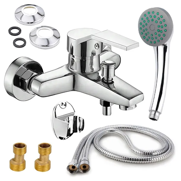 BATERIA PRYSZNICOWA ŚCIENNA CHROM Z SŁUCHAWKĄ WĘŻEM I UCHWYTEM MONTAŻOWYM