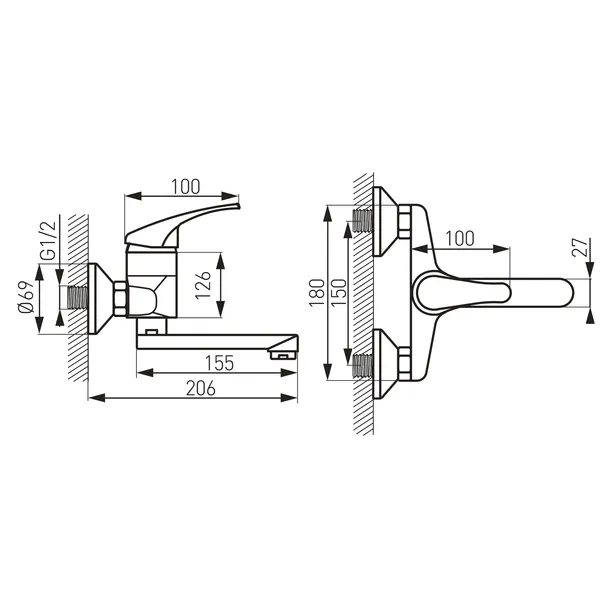 Bateria umywalkowa ścienna Ferro Basic srebrny