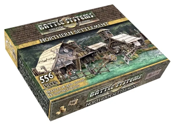 Zestaw BattleSystems: Northern Settlement zawiera gotowe kartonowe elementy do złożenia dzięki którym, odtworzysz na Swoim stole wioskę północy w stylu Wikingów. Może posłużyć zarówno do sesji RPG, jak i jako elementy zabudowy w grach bitewnych w skali 28 do 35mm.