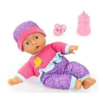 Lalka bobas do przytulania! Ta urocza, kolorowa lalka mierzy 30 cm. Dzięki miękkiemu ciału jest idealna do przytulania. Lalka ma śliczną buzie i uroczy strój z haftem i opaska do włosów. Do lalki dołączona jest butelka i smoczek do karmienia. Dzięki poręcznemu rozmiarowi lalkę można łatwo zabrać wszędzie, czy to do przyjaciół, dziadków, przedszkola czy na wycieczkę.