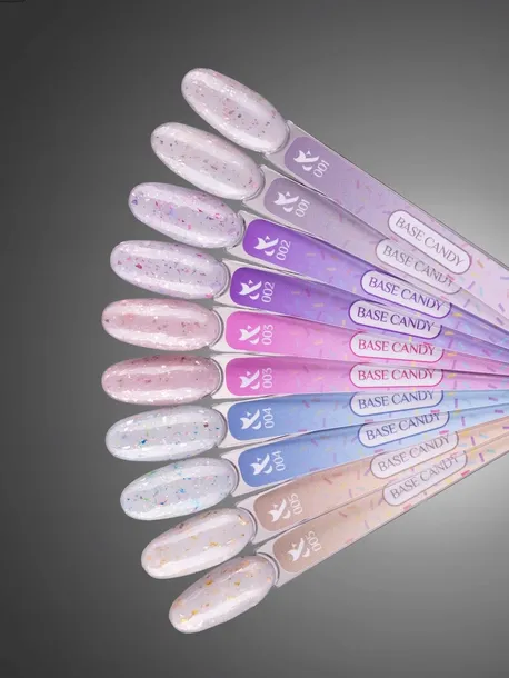 Candy Base to idealny sposób na nadanie paznokciom subtelnego blasku i wyjątkowego charakteru. Mnóstwo mieniących się drobinek w różnych kolorach i kształtach pozwala na stworzenie niepowtarzalnych stylizacji, które zachwycą każdego. Folia nie opada, równomiernie rozprowadza się w bazie, jest cienka i elastyczna, dlatego nie przeszkadza w pracy.