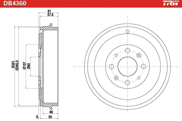 TRW DB4360 Bęben hamulcowy