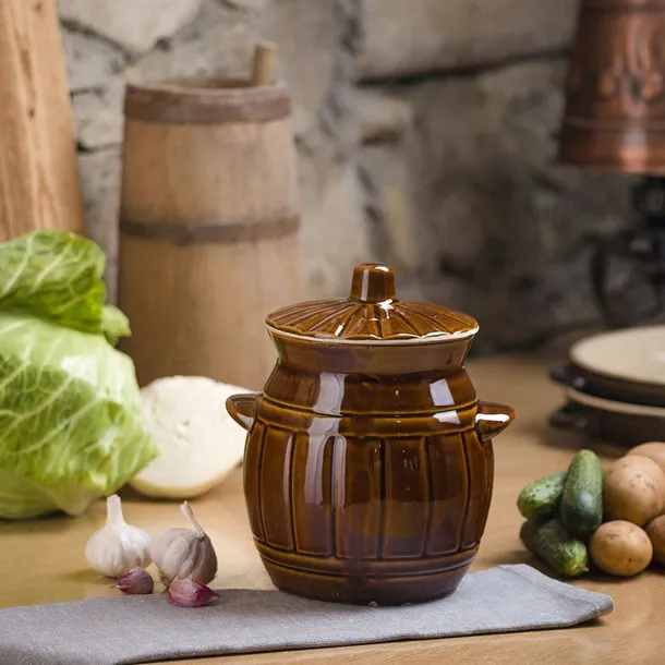 Użytkowa kamionka, to najlepsze rozwiązanie w przypadku serwowania polskich przysmaków. Służy do przechowywania żywności, dodatkowo przy odrobinie przypraw i czosnku świetnie nadają się do kiszenia ogórków, ale i również kwaszenia kapusty czy peklowania mięsa. Naczynie jest glazurowane na zewnątrz i wewnątrz dzięki czemu nie wchodzi w reakcję z żywnością, nie pochłania zapachów oraz nie przebarwia się. Naczynie kamionkowe w kształcie beczki posłuży zdecydowanie na długie lata i sprawdzi się w każdej kuchni i nie tylko.