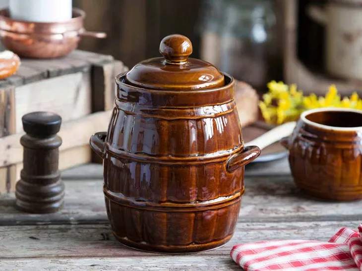 Użytkowa kamionka, to najlepsze rozwiązanie w przypadku serwowania polskich przysmaków. Służy do przechowywania żywności, dodatkowo przy odrobinie przypraw i czosnku świetnie nadają się do kiszenia ogórków, ale i również kwaszenia kapusty czy peklowania mięsa. Naczynie jest glazurowane na zewnątrz i wewnątrz dzięki czemu nie wchodzi w reakcję z żywnością, nie pochłania zapachów oraz nie przebarwia się. Naczynie kamionkowe w kształcie beczki posłuży zdecydowanie na długie lata i sprawdzi się w każdej kuchni i nie tylko.