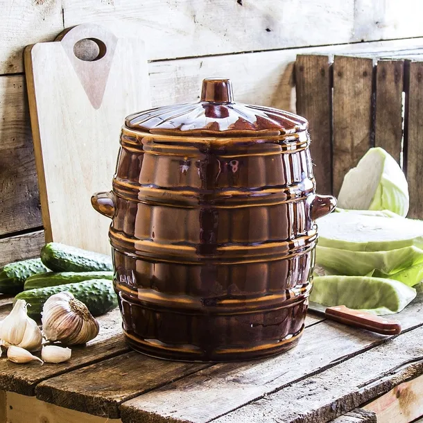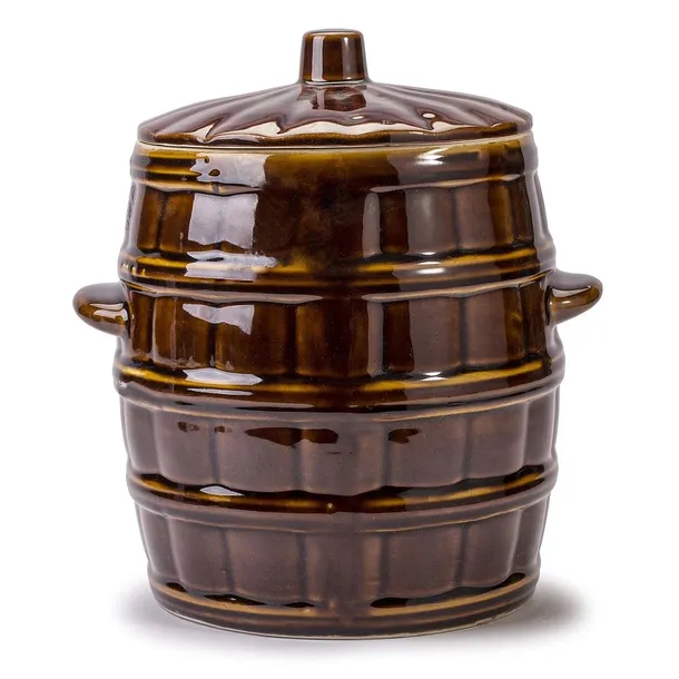 Duża beczka kamionkowa z pokrywą Krystynka 8 l + kamień dociskowy, to rustykalna forma i estetyka rękodzieła.