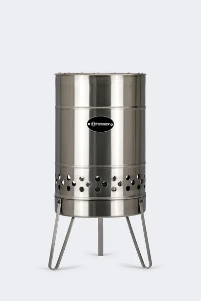 Beczka ogniskowa Petromax Pyron łączy solidną konstrukcję z nowoczesną technologią, oferując ogień o niskiej emisji dymu. Dzięki zaawansowanemu systemowi dostarczania powietrza, zapewnia czyste spalanie, a praca z łupanymi kłodami gwarantuje autentyczny wygląd płomieni i przyjemne ciepło. Jej dwuścienna konstrukcja oraz system wtórnego spalania skutecznie redukują niespalone gazy i cząstki, pozwalając w pełni cieszyć się atmosferą ogniska.