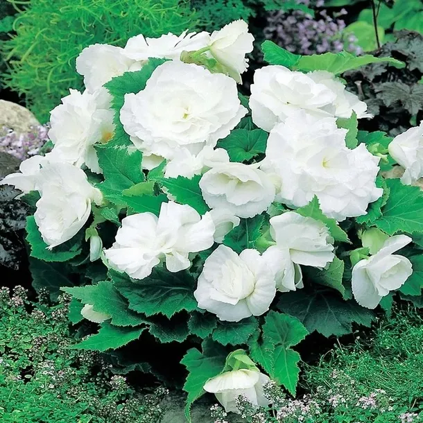 Roślina sięga do około 20-30cm wysokości. Liście ma grube, o kształcie sercowatym. Begonia kwitnie od czerwca do pierwszych przymrozków. Ich kwiaty przypominają małe różyczki. Begonie wielkokwiatowe są idealne do ogrodu, na balkon lub taras. W doniczkach begonie sadzimy w miejscach ciepłych oraz jasnych.
