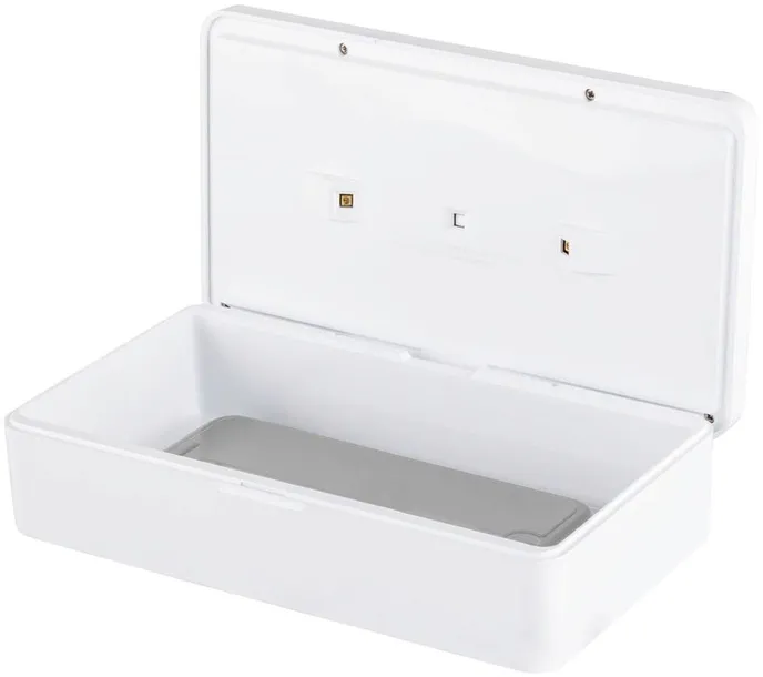 - To pudełko do sterylizacji Beldray UV-C jest wyposażone w bezprzewodową ładowarkę 5 W do ładowania urządzenia mobilnego z obsługą QI