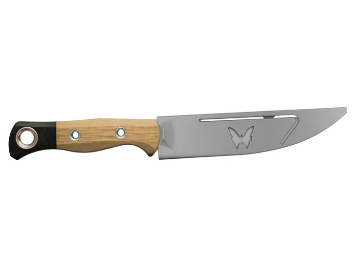 Meatcrafter to hybrydowy nóż o stałym ostrzu, preferowany przez doświadczonych myśliwych do przycinania, oddzielania kości i krojenia dziczyzny w kuchni polowej. Wyposażone w technologię Benchmark SelectEdge, zagięte do góry ostrze o długości 15 cm zapewnia wyjątkową wydajność cięcia, a jego elastyczność pozwala na większą kontrolę podczas odkostniania lub filetowania. Nóż Meatcrafter 4050-02 ma ostrze CPM-154 poddane procesowi stone washed, rękojeść Maple Valley Richlite i czarną główkę z tworzywa G10 ze złotą skuwką.