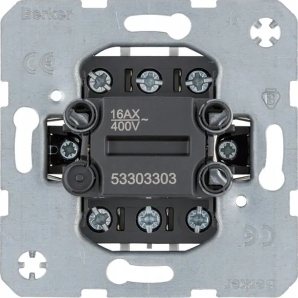 Łącznik podtynkowy trójbiegunowy z możliwością podświetlania przy użyciu wkładki jarzeniowej. Do połączenia z podświetleniem i połączenia kontrolnego z podświetleniem.