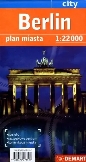 Plan Berlina w skali 1:22 000. Spis ulic, szczegółowe centrum, komunikacja miejska.
