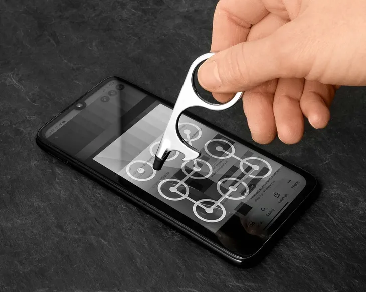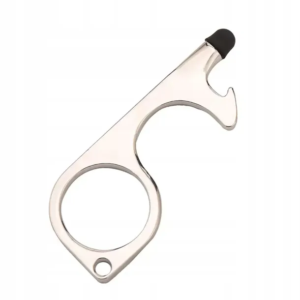 Jak ochronić się przed ryzykiem zarażanie poprzez najczęściej dotykane powierzchnie jak klamki, przyciski urządzeń (bankomaty, paczkomaty, komunikacja miejska) czy włączniki w przestrzeni publicznej, ekrany dotykowe itd.? Bezpieczne rozwiązanie jest na wyciągnięcie ręki. Bardzo praktyczny sprytny i wielofunkcyjny bezdotykowy... dotykacz, czyli brelok, dzięki któremu nie mając bezpośredniego kontaktu ręki z dotykaną powierzchnią możesz otworzyć drzwi, szafy, lodówki, przywoływać windę, wciskać różne guziki, a dzięki rysikowi obsługiwać smartfon lub inne urządzenia, jak bankomat czy paczkomat, wpisywać piny, kody itd., ale także otwierać butelki, a przede wszystkim zachować bezpieczeństwo przed zarażeniem wirusami i bakteriami.