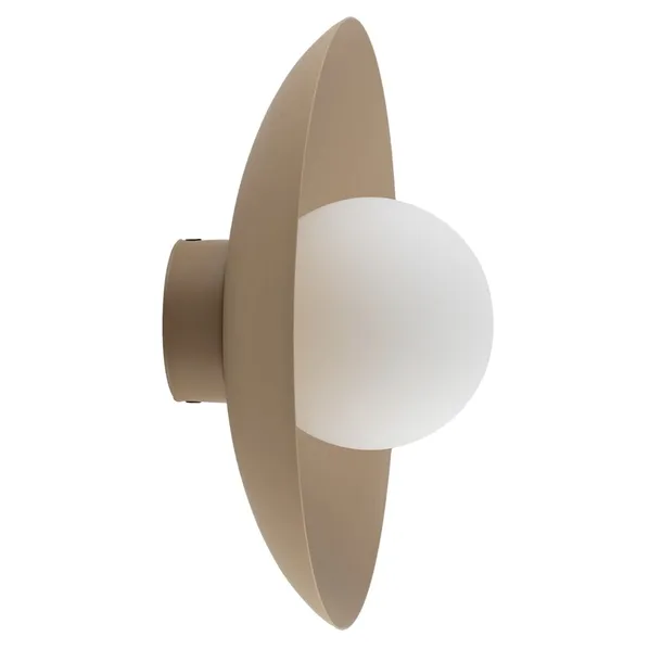 Kinkiet SLATE w odcieniu beżu to elegancka propozycja dla osób ceniących spokojną kolorystykę i nowoczesną prostotę. Delikatnie zaokrąglona, metalowa forma w ciepłym tonie pięknie współgra z mlecznym, kulistym kloszem, tworząc harmonijną i przytulną kompozycję. Lampa doskonale sprawdzi się w sypialni, salonie czy korytarzu, wprowadzając subtelne, rozproszone światło i komfortową atmosferę. Matowe szkło równomiernie rozprasza blask, eliminując ostre cienie i podkreślając dekoracyjny charakter oprawy. Solidna konstrukcja z metalu i szkła gwarantuje trwałość oraz estetyczne wykończenie. Model przystosowany jest do żarówki LED o maksymalnej mocy 8W, co pozwala dobrać intensywność światła według własnych preferencji. To minimalistyczne oświetlenie ścienne, które łączy nowoczesność z ciepłem naturalnych barw.