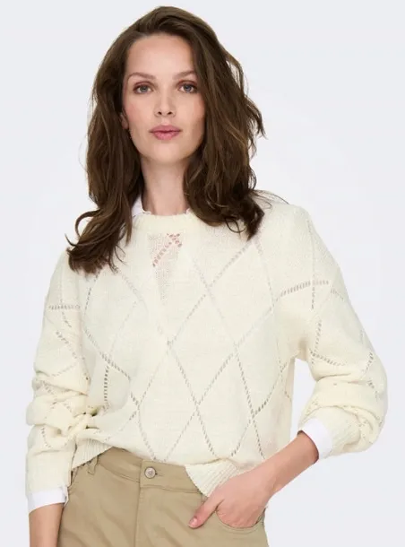 BEŻOWY PRZEŚWITUJĄCY SWETER ONLY S