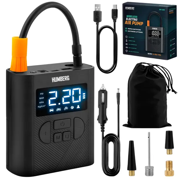- ✅ Presety pompowania: samochodu, motocykla, roweru, dmuchanych zabawek