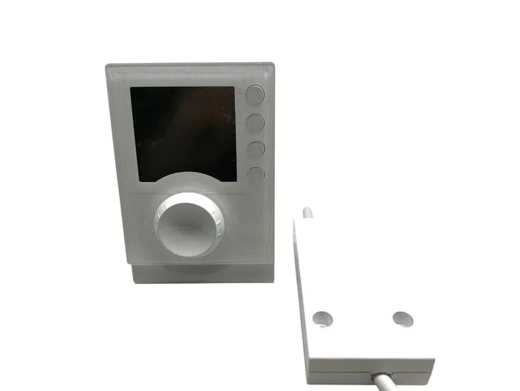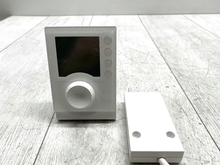Tybox 1137 to bezprzewodowy termostat, który można przymocować do ściany lub zamontować na meblach w pomieszczeniu. Jest zasilany 2 bateriami alkalicznymi i jest podłączony bezprzewodowo do odbiornika (w zestawie), który podłącza się bezpośrednio do centralnego ogrzewania.