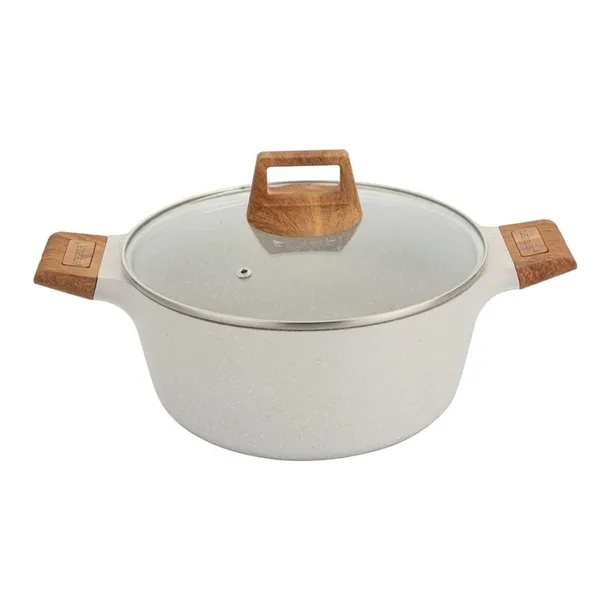 Naczynia z serii NATURALLY firmy BERGNER wykonane są z wysokiej klasy odlewanego aluminium pokrytego wewnątrz potrójną powłoką marmurkową (Marble+) o bardzo wysokim współczynniku twardości. Powłoka zewnętrzna w kolorze naturalnym piaskowym Te atrakcyjne i modne naczynia wyposażone są standardowo w uchwyty typu SOFT TOUCH (silikon handle) imitujące drewno. Przystosowane do wszystkich rodzajów kuchenek: gazowa, elektryczna, ceramiczna, halogenowa, indukcyjna.