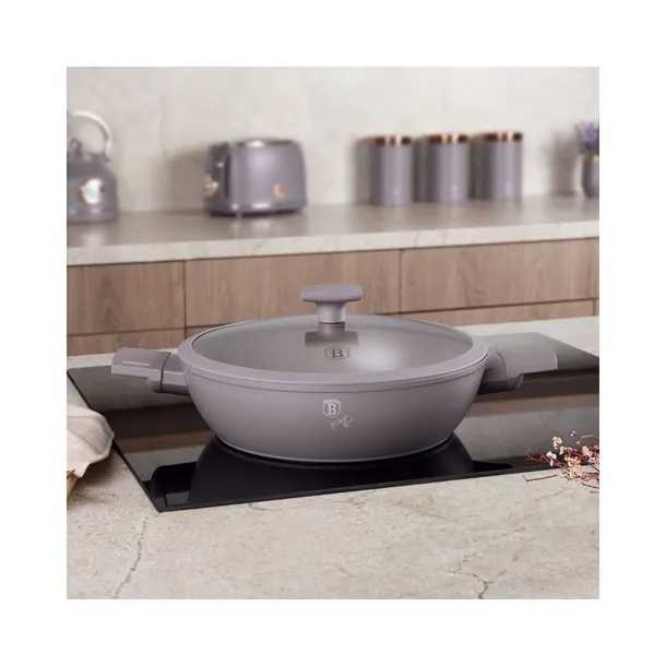 Garnki, patelnie i akcesoria z serii TAUPE COLLECTION firmy BERLINGER HAUS wykonane są z wysokiej klasy aluminium pokrytego wewnątrz potrójną powłoką tytanową TYTAN PRO o bardzo wysokim współczynniku twardości. Powłoka zewnętrzna w kolorze szarym matowym. Te atrakcyjne i modne naczynia wyposażone są standardowo w uchwyty typu SOFT TOUCH (silikon handle). Przystosowane do wszystkich rodzajów kuchenek: gazowa, elektryczna, ceramiczna, halogenowa, indukcyjna. System TURBO INDUCTION (bardzo szybko nagrzewają się) pozwala zaoszczędzić nawet 35% energii.
